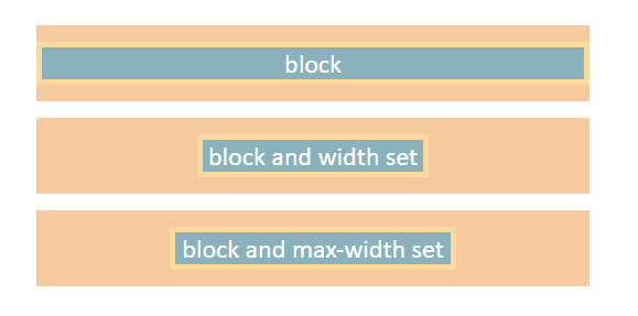 First things first, each of the elements above are blocks and have set margin: 0 auto, but it does not work since blocks have width equal to 100% by default (the first example). The block covers the whole page and therefore cannot be centered. If we set, for example, the width 300px and margin: 0 auto it will magically center - like in the second example. You can do the same thing be using max-width property (the third example).